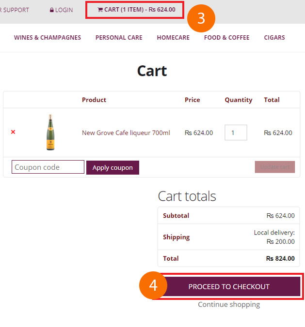Step 2.Click "Cart", to view items in your cart and Click "Proceed to Checkout."