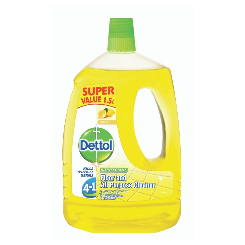 Dettol All Purpose Cleaner Citrus 1.5L kills 99.9% germs, removes tough stains and leaves your home with a sparkling shine and a lasting clean fragrance. Suitable for use in kitchens and bathrooms. Safe on all surfaces including ceramic, marble and granite.