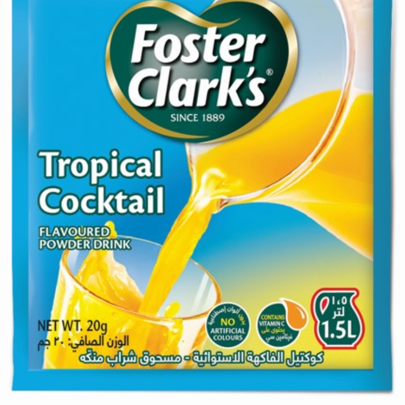 Foster Clark’s Tropical Cocktail 20G: A sip of paradise, effortlessly mixed. Enjoy the tropical breeze in every convenient sip—refreshment simplified for your tropical moments, anywhere!