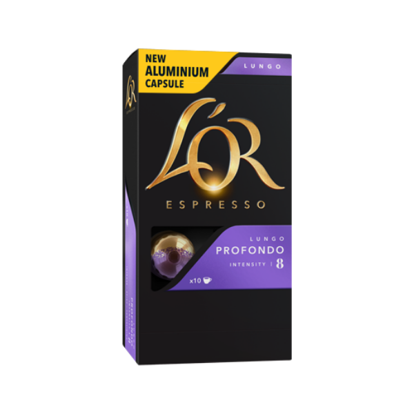 Lungo Profundo raises the volume with an intense and spicy aroma of roasted almonds and tantalising liquorice, rounded off with a shimmering bronze mousse layer – Intensity 8